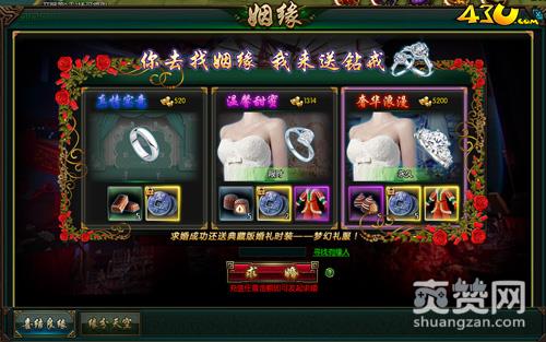 红包固然惹人喜爱,美好的姻缘也是令人向往哦!求婚者发起选择婚礼类型并发出邀请,对方同意后就会扣除相应的元宝,同一时间只能发出1份求婚邀请哦!那还等什么?赶快来邂逅你的唯美爱情吧!而且43u《摸金校尉》还贴心的为寻找姻缘的玩家送出闪亮钻戒哦!