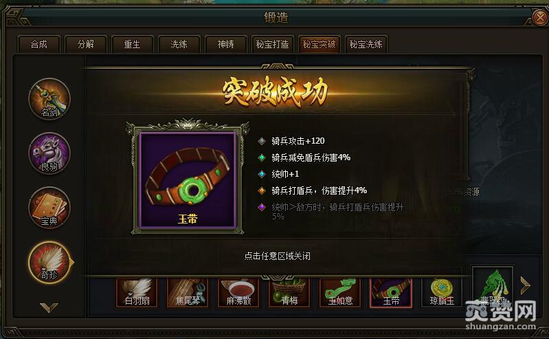 玉带秘宝属性2:骑兵减免盾兵伤害4%