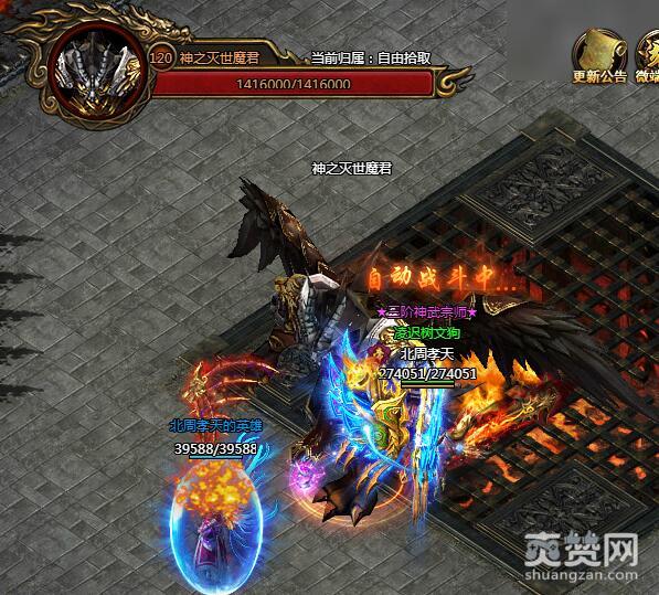 第36关BOSS:神之灭世魔君,等级120级,血量1416000点,推荐115级攻略,推荐战力100万再攻略,这样打的时间会缩短很短。下同。