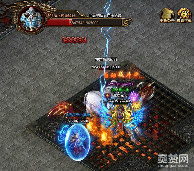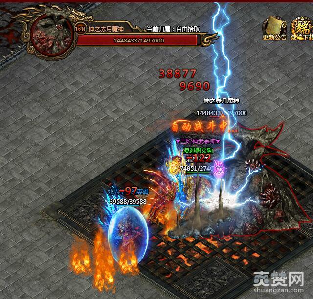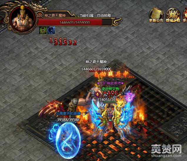 第39关BOSS:神之震天魔神,等级120级,血量1659000点,推荐115级攻略,推荐战力115万再攻略。