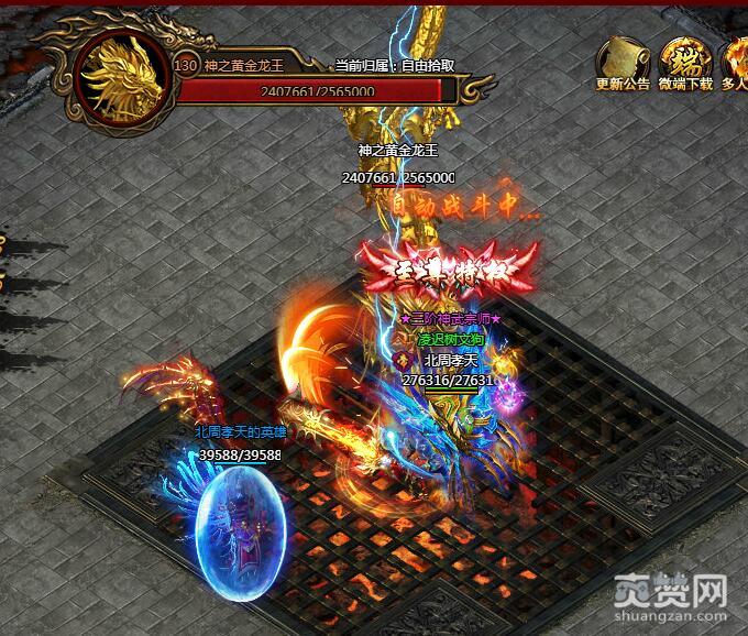 第45关BOSS:神之黄金龙王,等级130级,血量2565000点,推荐115级攻略,推荐战力130万再攻略。