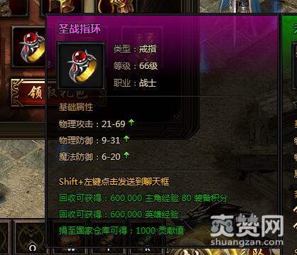 圣战指环。66级战士戒指。提欧物理攻击、物理防御以及魔法防御的略微增长。