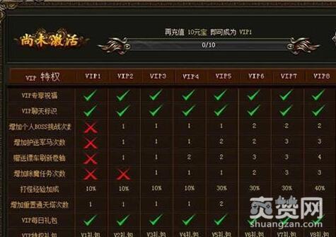 关于XY游戏《梁山传奇》的VIP系统,加入便能获得尊贵特权。登录游戏之后点击人物头像旁的VIP按钮,再点击立即充值,当累计充值10元宝后,就能正式成为尊贵的VIP了。