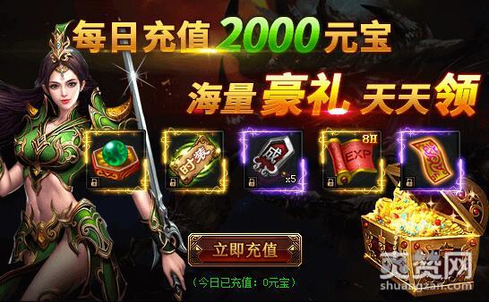 活动期间内,每天充值2000元宝可以领取1000W经验,时装兑换卷,成就令牌,探宝符、8小时三倍经验符等海量道具!