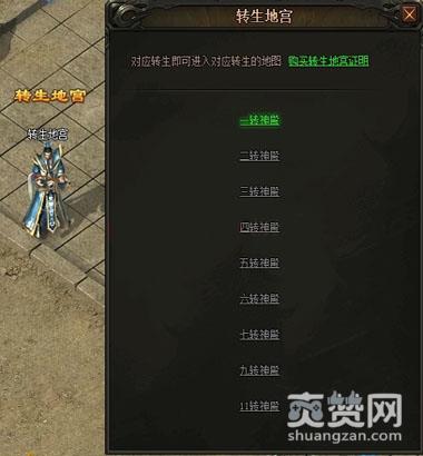 在威龙城以及沙漠土城都有“转生地宫”NPC,玩家通过NPC即可进入到地宫中。转生地宫一共有9层,对应转生等级即可进入对应转生的地图。