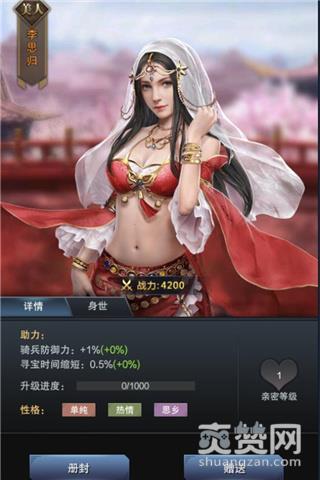 迎娶到的美人可在铜雀台进行册封,铜雀台位于主公宫城左侧,在这里,主公可以与嫔妃培养亲密度,嫔妃与主公亲密度等级提升可增加嫔妃的助力加成,同时,亲密度达到相应等级的嫔妃,还能进行册封,册封后的嫔妃属性可以得到大量的提升。培养亲密度,主公需要通过赠送金簪、玉镯、同心结、胭脂、香囊给妃子,才能获得亲密度的提升。这些亲密度的道具,主公可以在城市坊市中交易或参加活动获得。