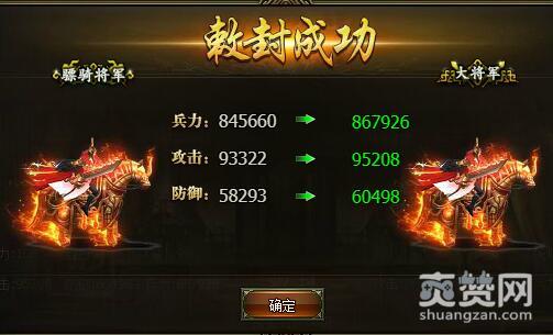 从大将军到吴候 敕封所需军功200000,美玉30个,需要将领60级