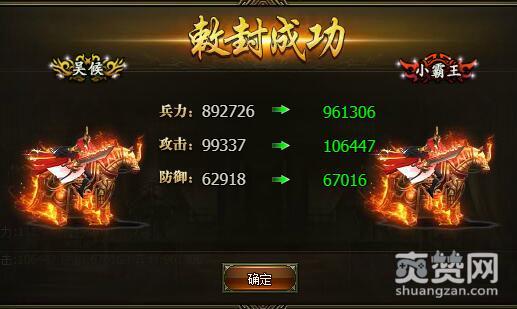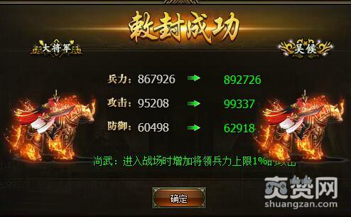 从吴侯到小霸王 敕封所需军功400000,美玉50个,需要将领60级