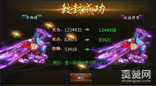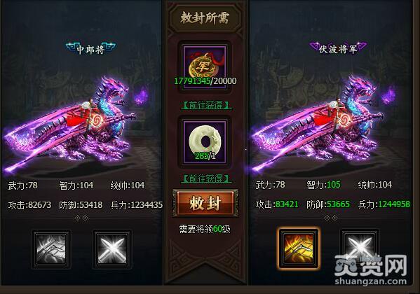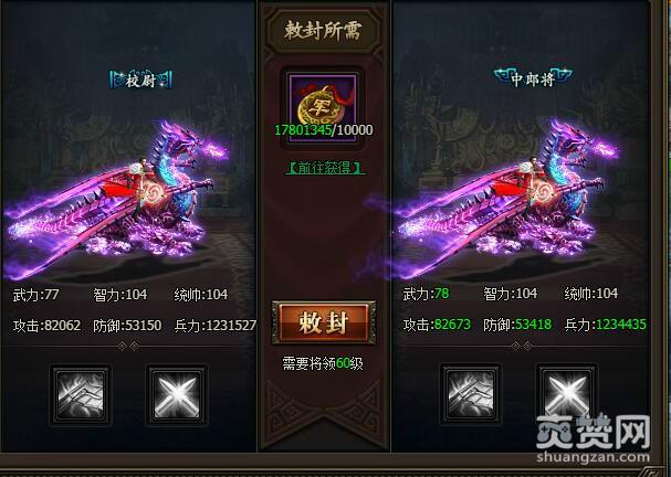 从校尉到中郎将 敕封所需军功10000,需要将领60级