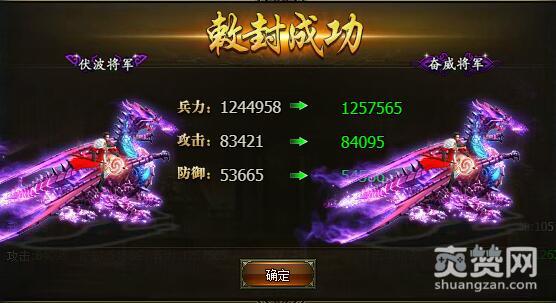 从伏波将军到奋威将军 敕封所需军功40000,美玉2个,需要将领60级