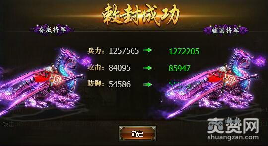 从奋威将军到辅国将军 敕封所需军功60000,美玉4个,需要将领60级