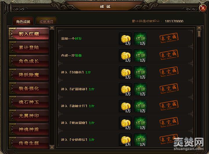 进入“封魔谷”1次。金币1万,成就1万。