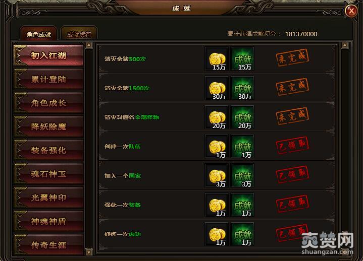 灭封魔谷全部怪物。金币20万,成就