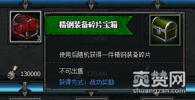 精钢装备碎片宝箱在本文介绍的战功奖励段中有三件。它的作用无非就是分解为60点装备积分,意义不大。一般打到这个战功奖励的玩家都是把绿色精钢装备进行分解的。