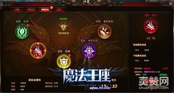 圣纹作为51《魔法王座》神翼系统的第一个子系统,非常的简单直接,就是要在你的神翼上留下痕迹,将所有神翼中的属性依次强化,让你的神翼更加稳固更具有杀伤力,其中的圣纹连锁则是在强化的外壳上再上一个台阶,令神翼达到彻底升天般的进化。