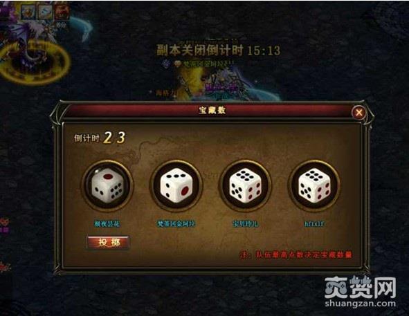 掉宝是根据组队4人中掷出最高点数×2来分配,比如最高6点,就是每人能捡取12个宝箱,5点是10个,以此类推,每少1点降低2个获得宝箱数(捡宝箱的感觉很爽,满地黄金甲啊)