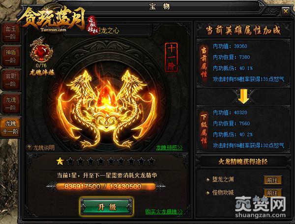 每周必更新的《贪玩蓝月》,一直秉承着带给玩家更好的体验,今日早上9:00《贪玩蓝月》再一次版本更新,1.宝物“龙魄”开放至12阶。玩家可通过提升战魂等级来解锁宝物“龙魄”至更高等阶,宝物“龙魄”等阶提升至越高,英雄获得的内功属性加成越高,合击技能的怒气值恢复速度越快!