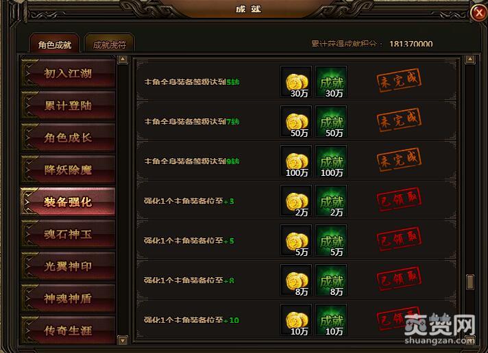 强化1个主角装备位至+8。可获金币8万,成就积分8万。