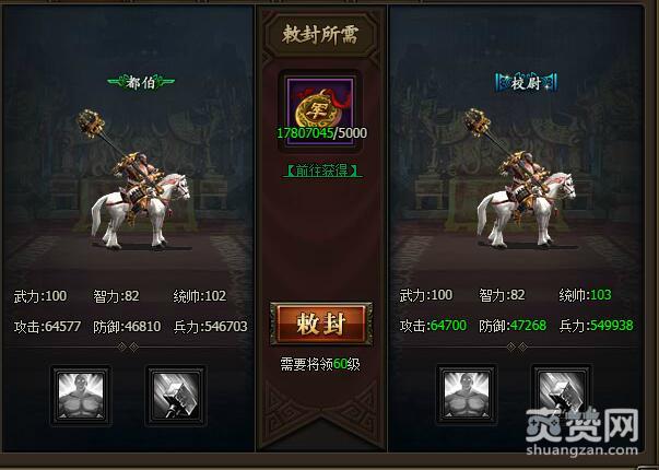 从伍长到都伯 敕封所需军功2000,需要将领60级