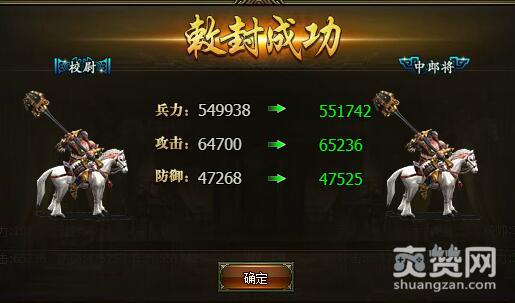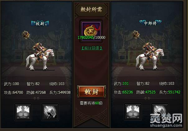 从校尉到中郎将 敕封所需军功10000,需要将领60级