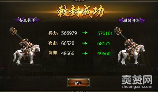 从奋威将军到辅国将军 敕封所需军功60000,美玉4个,需要将领60级