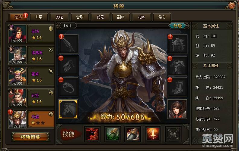 智力:85(百分比提高部队的攻击、兵力)
