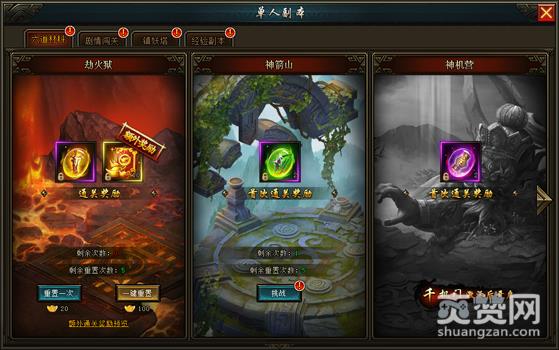 玩家只要点击主界面上的单人副本,点击六道材料就可进入挑战。在每个材料副本中,玩家每次可免费挑战一次,每天的0点会重置次数。但若是当天的每个副本的免费次数消耗完了,玩家还可用一定的元宝来重置副本,每天最多重置20次。当玩家在花费元宝重置副本后,可立即扫荡来获得特殊重置副本奖励呢!