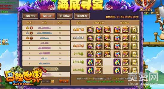 海底寻宝是腾讯《冒险世界ol》游戏内的一个限时活动,在活动开启期间,玩家可以体验海底寻宝、每日比拼、目标奖励、海底集市一系列的全新游戏内容。
