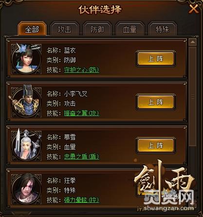 作为玩机之家《剑雨江湖》闪亮新登的挑战副本,论剑江湖除了能够让各路豪侠体验十足过瘾的战场厮杀之外,还提供了蓝衣、小李飞叉、暮雪、狂拳等大波伙伴供玩家选择,作为辅助陪伴玩家上战场诛宵小。据说,这些小伙伴虽然只是协助上场,但是各个身怀绝技。所以,战场上有他们相伴,必定能够事半功倍,赢得更大的胜利之机。