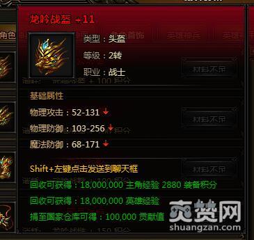 龙吟战盔。2转头盔,物理攻击提升52-131,物理防御提升103-256,魔法防御提升68-171。