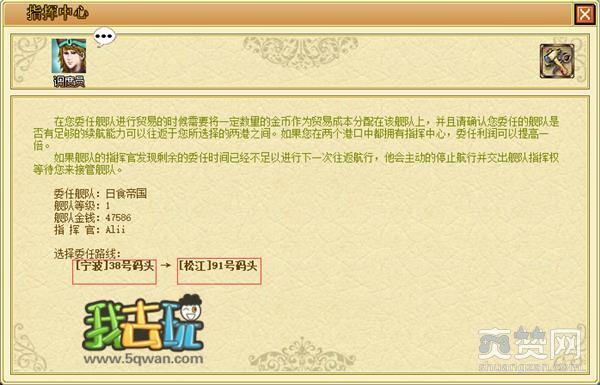 确认金额后,你就可以去选择委任路线,如果你只有2个码头,那么只有一条路线可选。但如果你有多个码头的话,那么你将有多条委任路线可选,你可以先试验几次,然后再选择其中可以给你带来最大利润的路线。