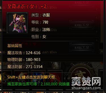 至尊法衣。7转以上法师可装备。提供魔法攻击124-616点,物理防御180-903点,魔法防御271-1354点。