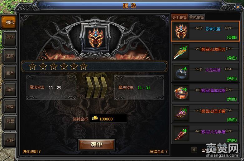 5.强化10件装备到8星,奖励成就积分10万点、金币10万;