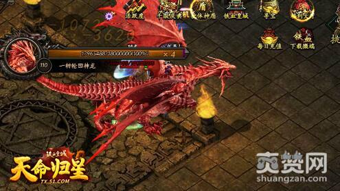 进入51《铁血皇城》转生神殿地图,一只浑身通红的“一转轮回神龙”出现在我眼前。1800万的生命值瞬间就让小编有种半途而废的冲动。连吃了几瓶攻击力加强的药水,每刀下去对于神龙生命值的伤害还是微乎其微。要么,你拥有超强的耐心,要么你去纠结一些你的死党或帮会成员。一个人要搞定它,需要大量的药水以及非常多的时间。