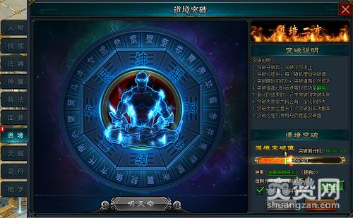 道境越高,能力越强,玩家点击游戏界面“角色”为主角增加“道境”。每天通过在线获得道境修为,也可以通过各种任务获得的修为丹,当道境修为满值时,可以进行道境突破。