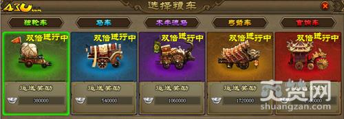在43u《三国之志2》中,每天的15:00-17:00和21:30-23:30两个时间段为双倍运粮时间,玩家在这个时间点运粮和抢粮都是双倍奖励,粮车从绿品到红品依次为独轮车、马车、木马流马、弓箭车、官饷车。镖车品质不同奖励也不同的!