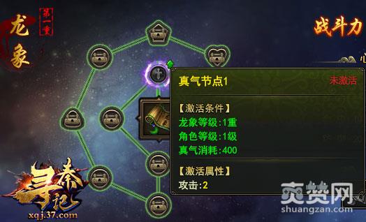 在37《寻秦记》中,每个心法都由众多节点组成,节点又分为真气节点与砭石节点。玩家激活心法后,可以使用真气或砭石注入各节点,每次节点升级都会给玩家带来属性加成。