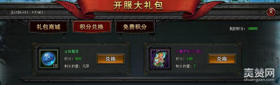 最后还有个小精灵卡(3小时),虽然兑换积分只要100,但小编觉得没必要,288元宝不是特别难筹集,有了就直接激活30天的吧。