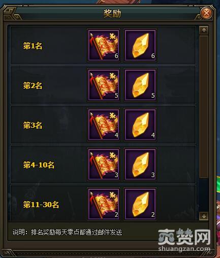 奖励有两种道具。分别是军旗碎片和升级石。两种道具的作用都是升级军旗。能获得奖励的玩家只有前50名。