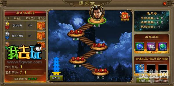 通天塔位于城池的边缘,是一处幽静隐蔽的地方。虽然通天塔外观普通,但内藏玄机,许多慕名而来的挑战者在通天塔中不断受挫,最终可能停留在通天塔的某个塔层。通天塔的规则是战胜每一层的守关使者。如果挑战成功,挑战者可获得丰厚的奖励,如果挑战失败,则挑战者会停留在之前的塔层。