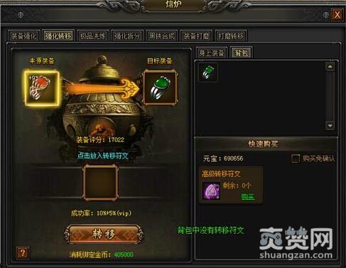装备强化好后想换装备怎么办?不用担心!923yx《战天》强化系统中还有强化转移这一功能,大家可以通过使用转移符文来转移强化等级,可以保证100%转移成功不掉级。需要注意的是,目标装备强化等级必须要比来源装备的强化等级低。