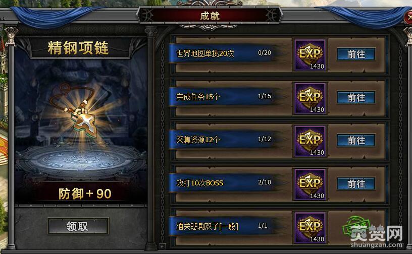 成就的第三件装备奖励是精钢项链。要想获得这件装备,你必须满足以下4大成就条件才能够领取。它们分别是: