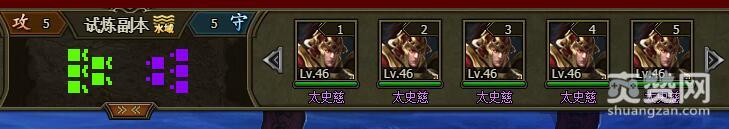 我们试着挑战一下困难难度的太史慈,进入战场,战场地形是水域,对手是5个太史慈46级。
