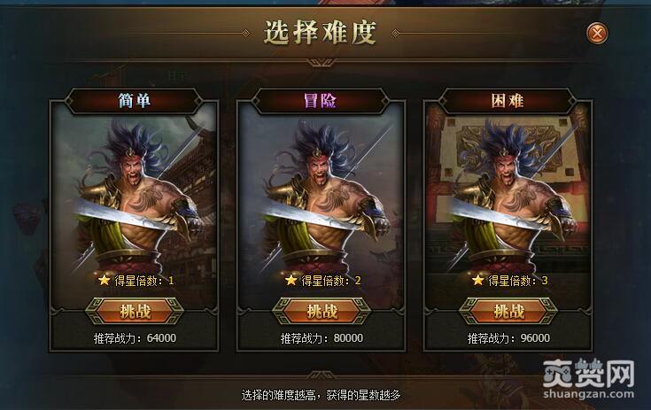 第9关对手是甘宁。简单模式下推荐战力64000,可得1颗星;冒险模式下推荐战力80000,可得2颗星;困难模式下推荐战力96000,可得3颗星。