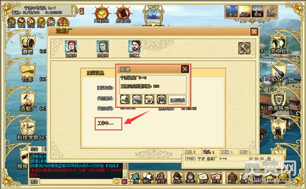 制造加速道具可以缩短制造船只和制造军火使用的时间。这类的道具只有一种,所以使用时直接使用即可。