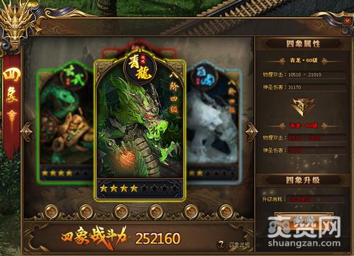 四象的成长也是非常困难的,需要不同的灵力才可以吸收升级,获得的方式也是非常之多的,青龙灵力的获得方式有火龙试炼,攻城战,材料副本,还有在商店内购买获得。白虎灵力的获得方式有今晚吃鸡,和商城购买获得,朱雀灵力可以在材料副本和野外怪物掉落获得,玄武灵力可以在神威魔域,野外怪物掉落获得。