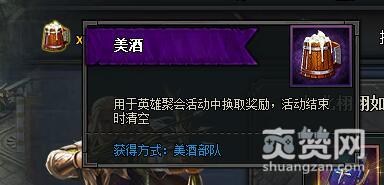 美酒:用于英雄聚会活动中换取奖励,活动结束时清空。获得方式:美酒部队。