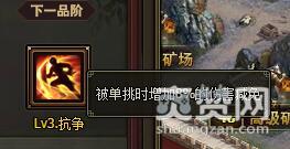 2级抗争升3级抗争时,3级抗争规定:被单挑时增加8%的伤害减免。