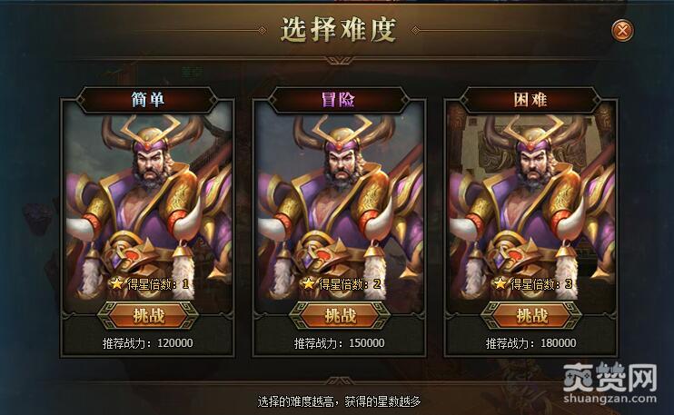 第16关对手是黄忠。简单模式下推荐战力112000,可得1颗星;冒险模式下推荐战力140000,可得2颗星;困难模式下推荐战力168000,可得3颗星。