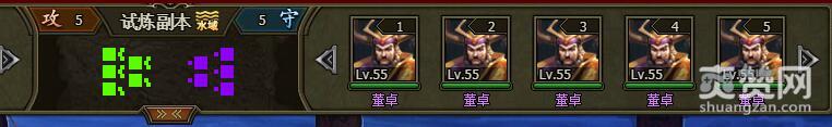 我们试着挑战一下困难难度的董卓,进入战场,战场地形是水域,对手是5个董卓55级。